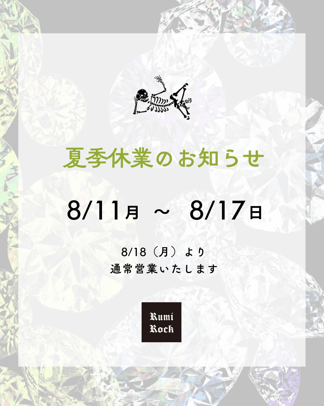 ルミロックストアは以下の期間を夏季休業とさせていただきます。