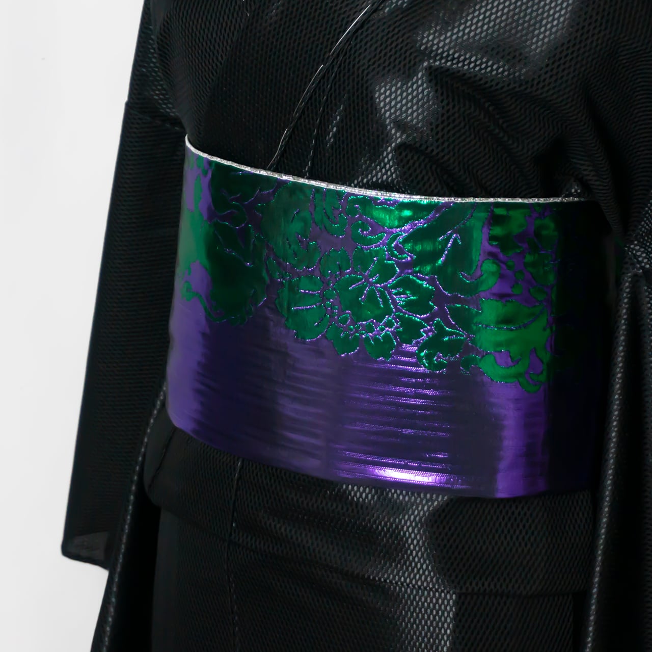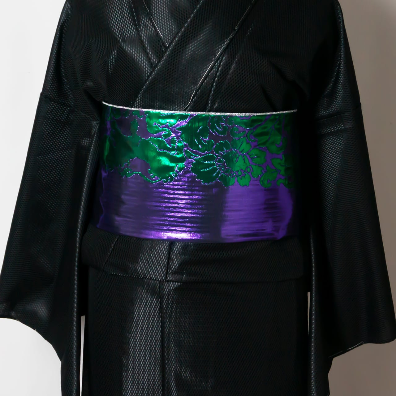 【20周年記念カラー】Rumi Rock兵児帯「ギラヘコ」ライオン更紗 パープル×グリーン [E1375]