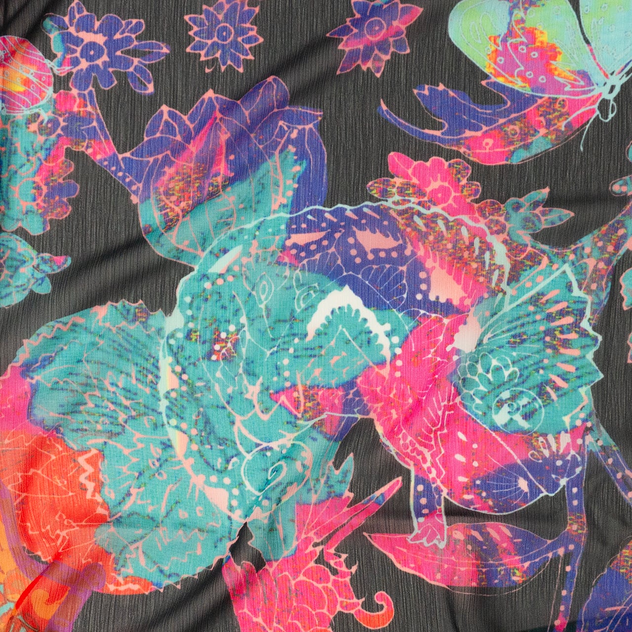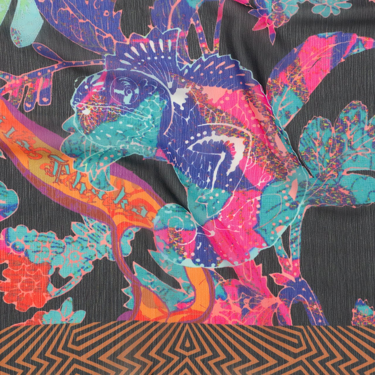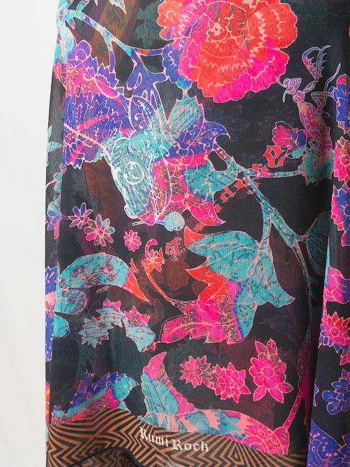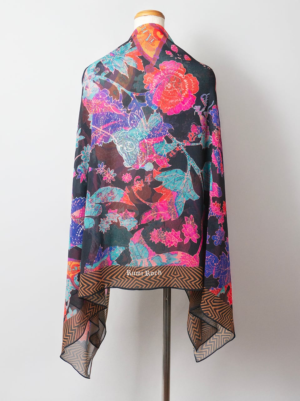 Rumi Rock大判ストール カメレオン 黒地に赤 [G1869]