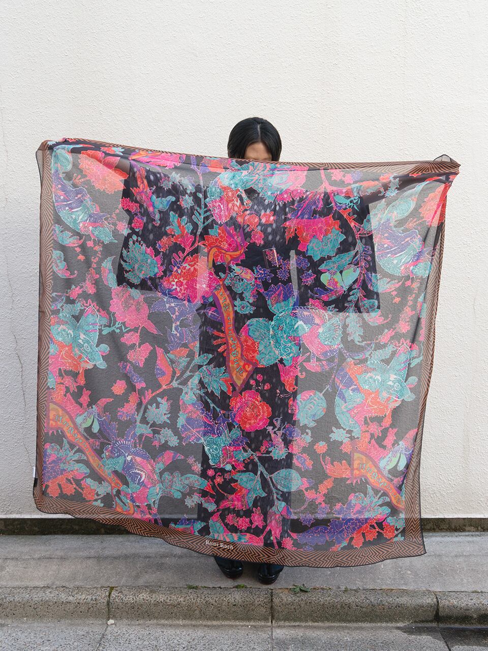 透け感のあるやわらかな生地を使って大判のストールを作りました。