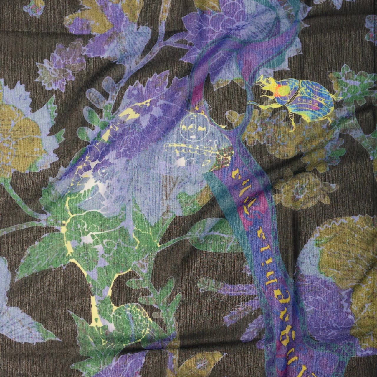 Rumi Rock大判ストール カメレオン 黒地に緑 [G1871]