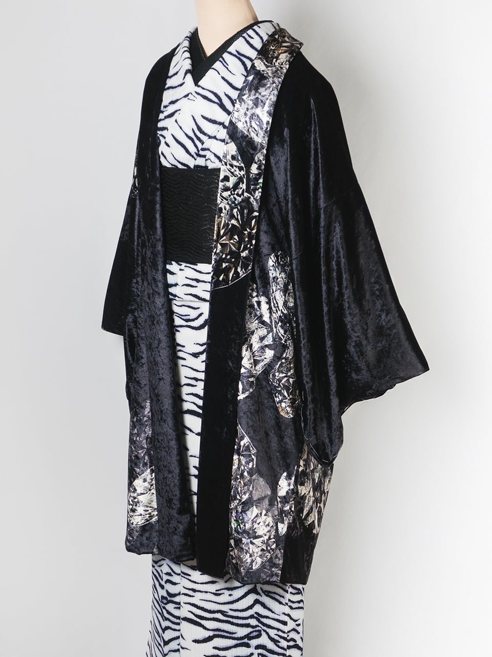 上品な光沢があり、発色のいいベロア素材の羽織です。