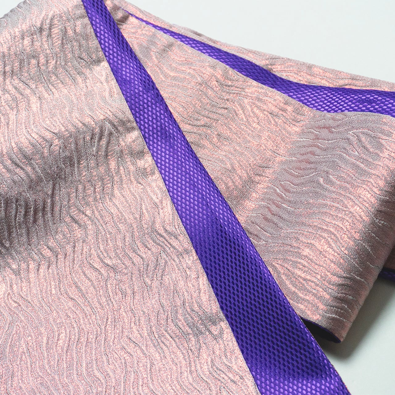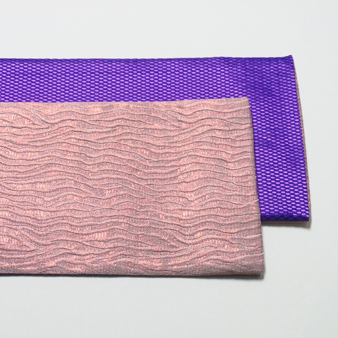 表面は光沢のあるライドレッド、裏面にはバーズアイ生地のパープルを使用。