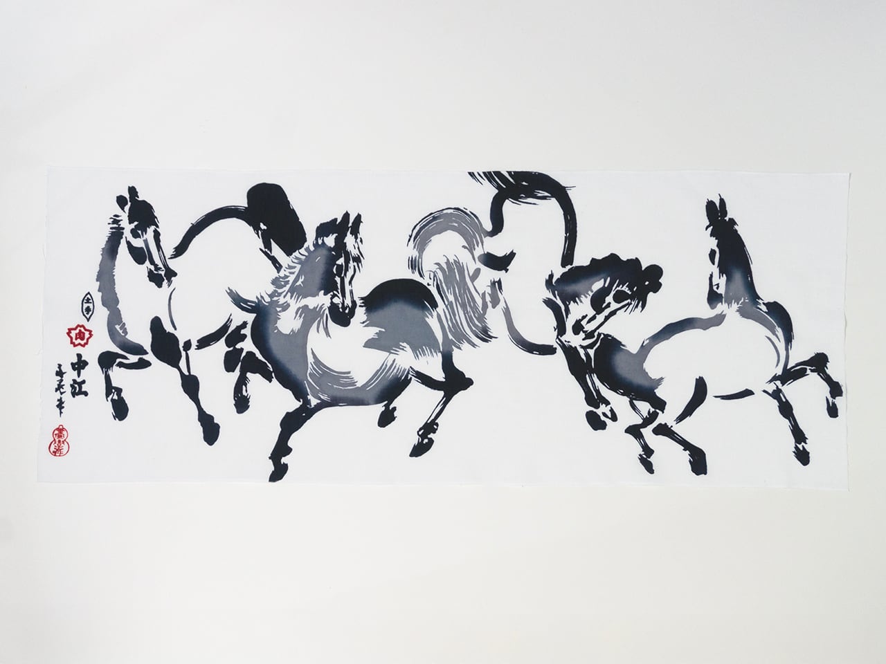 中江の所蔵の名品より、元気のいい馬たちが楽しそうに跳ね回ります。