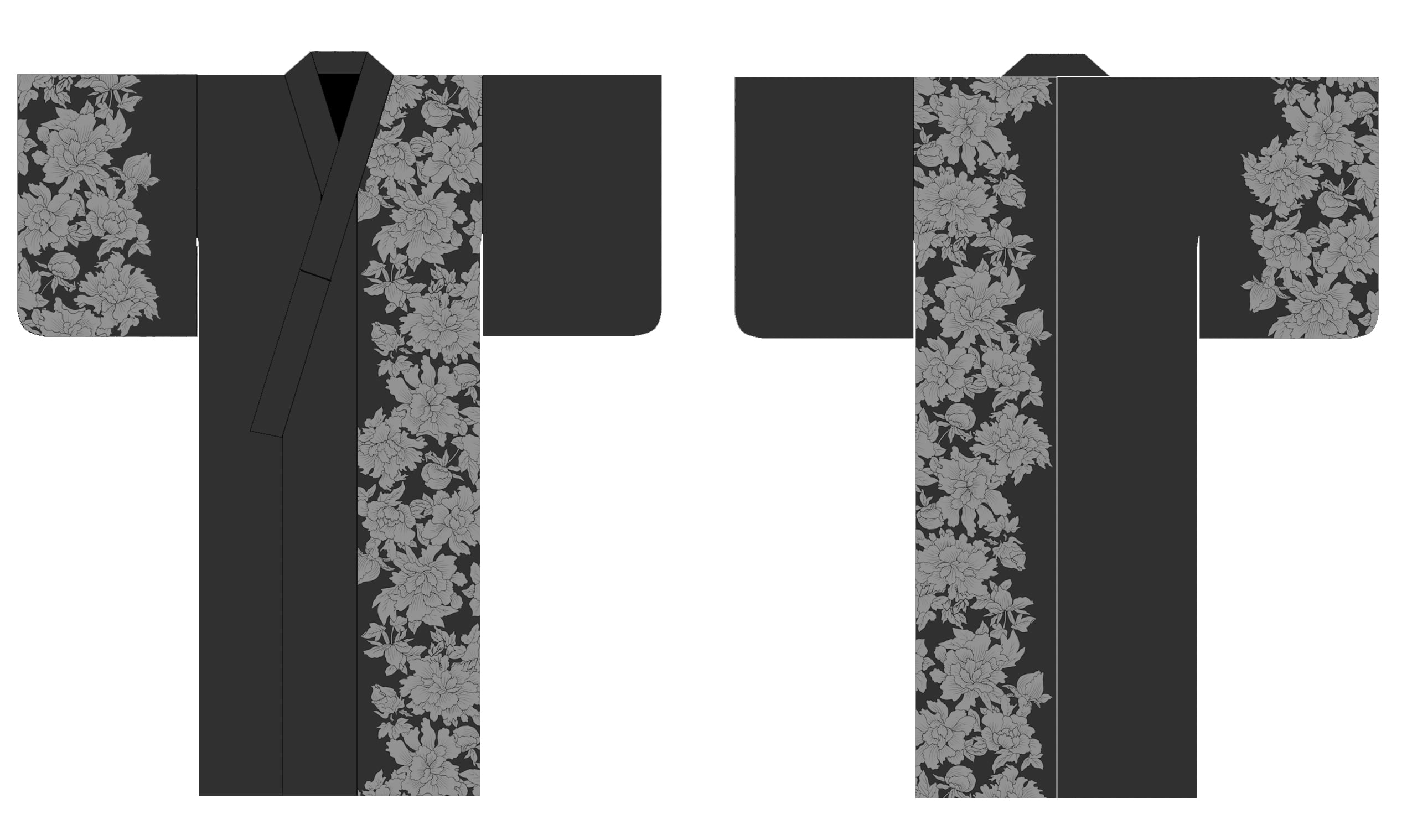 しなやかで、上品な光沢を持つ正絹着物に型染めをいたしました。