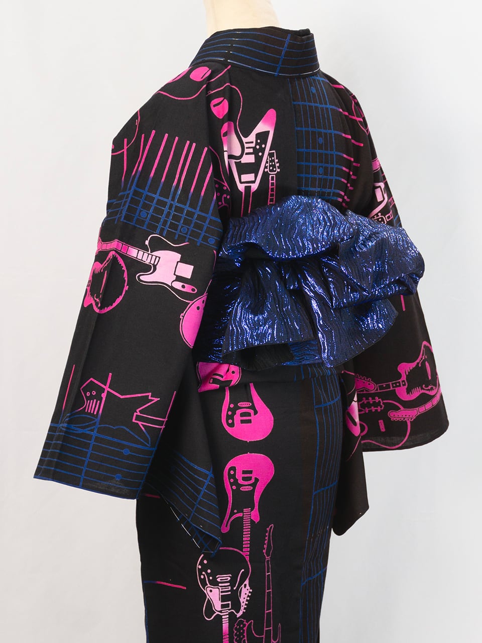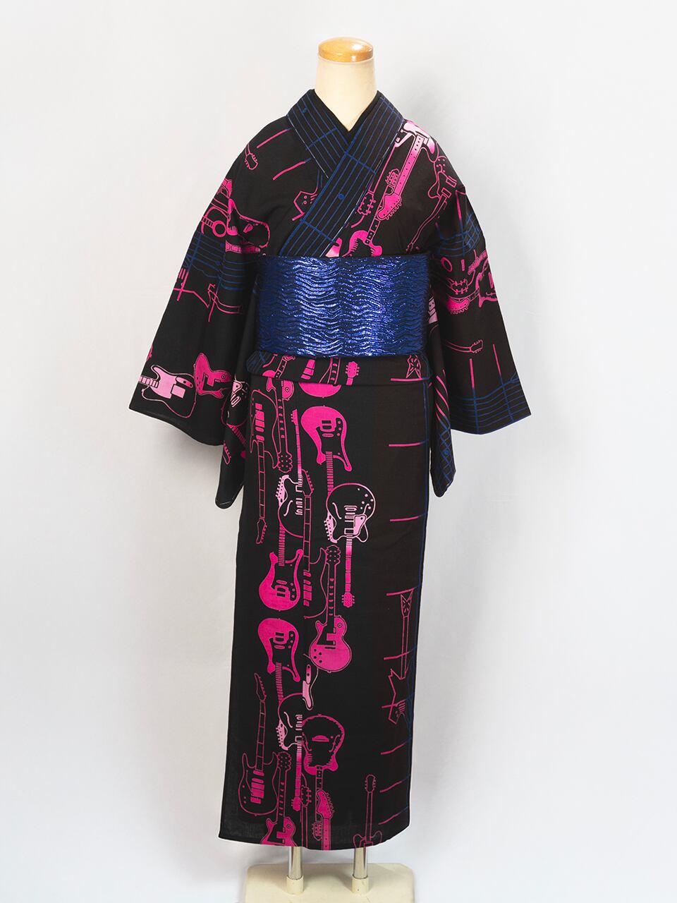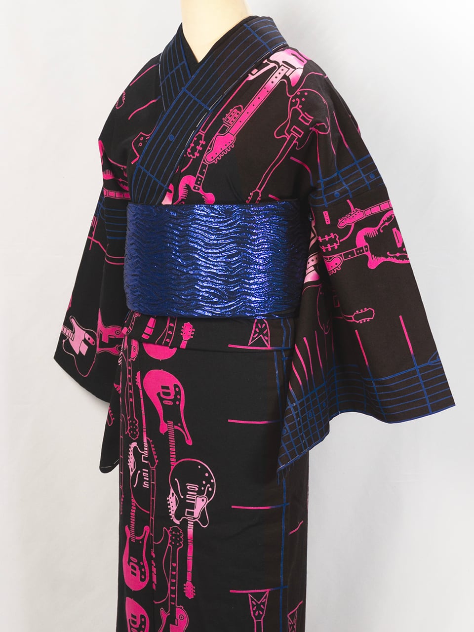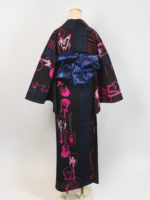 RumiRock 反物 ゆかた「エレキギター」ブルーピンク [A1785]