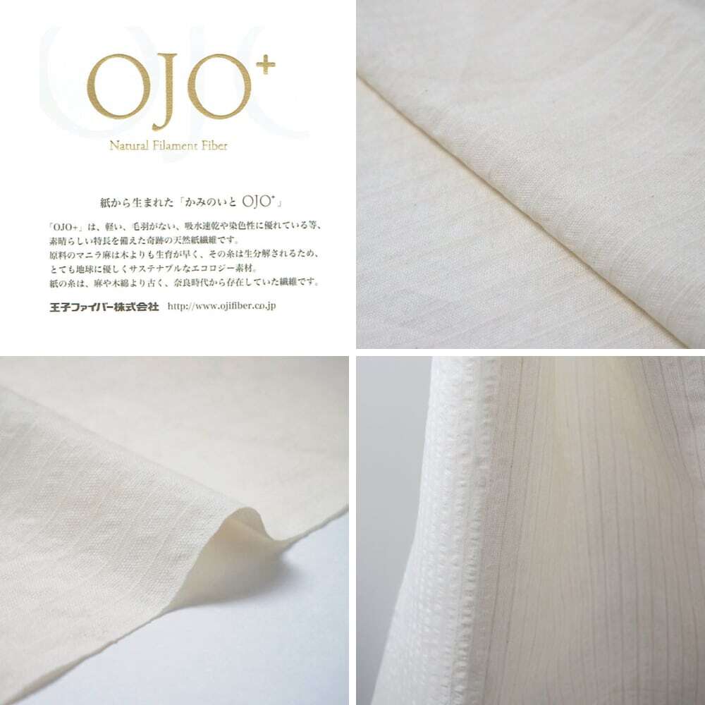 「OJO+(オージョ)」は、軽い、毛羽がない、吸水速乾や染色性に優れている等、 素晴らしい特長を備えた奇跡の天然紙繊維です。