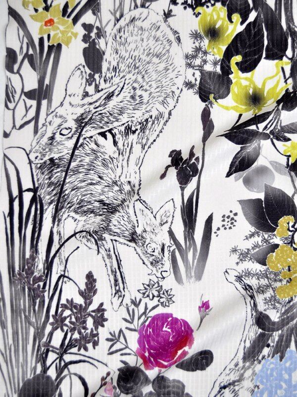 それぞれのモチーフが一枚の着物の上で奏でるハーモニーを感じてください。
