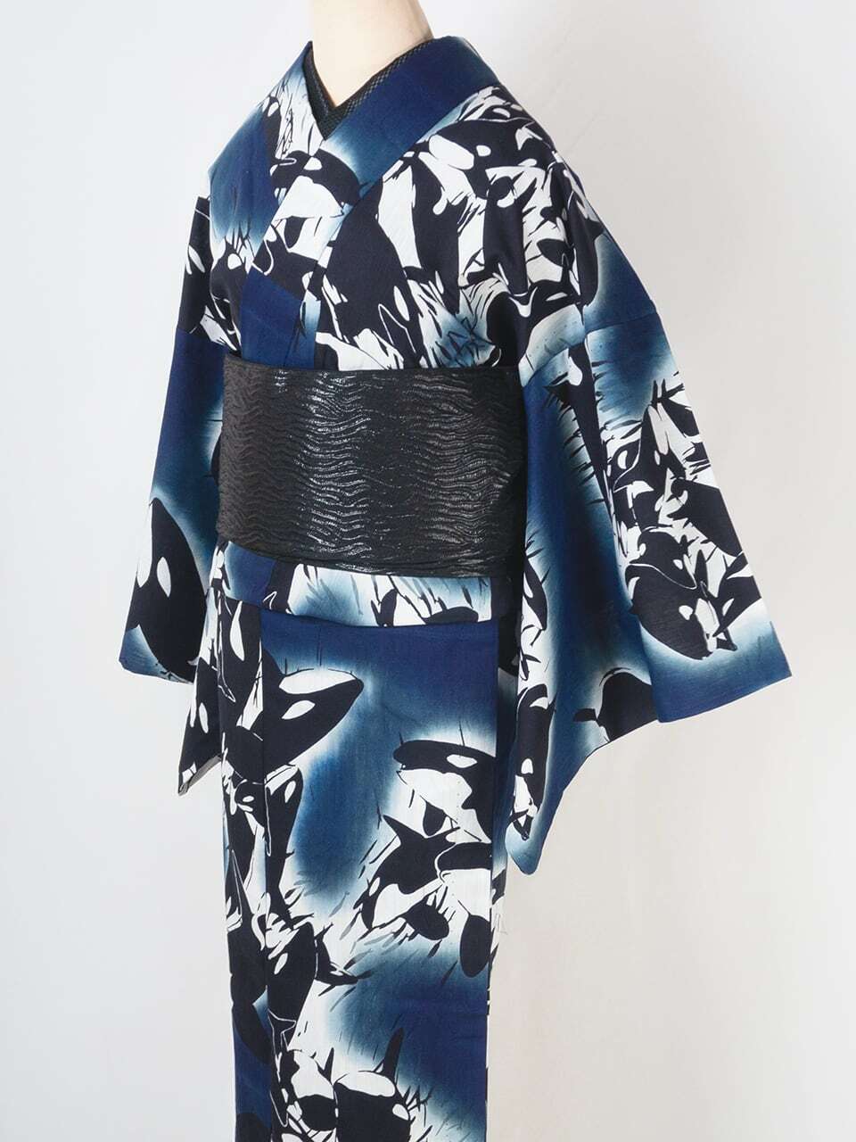 RumiRock 反物 ゆかた「オルカ」紺黒 [A925]