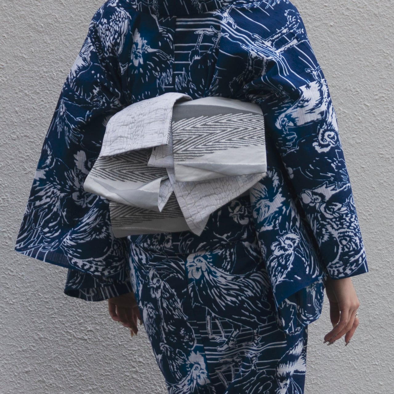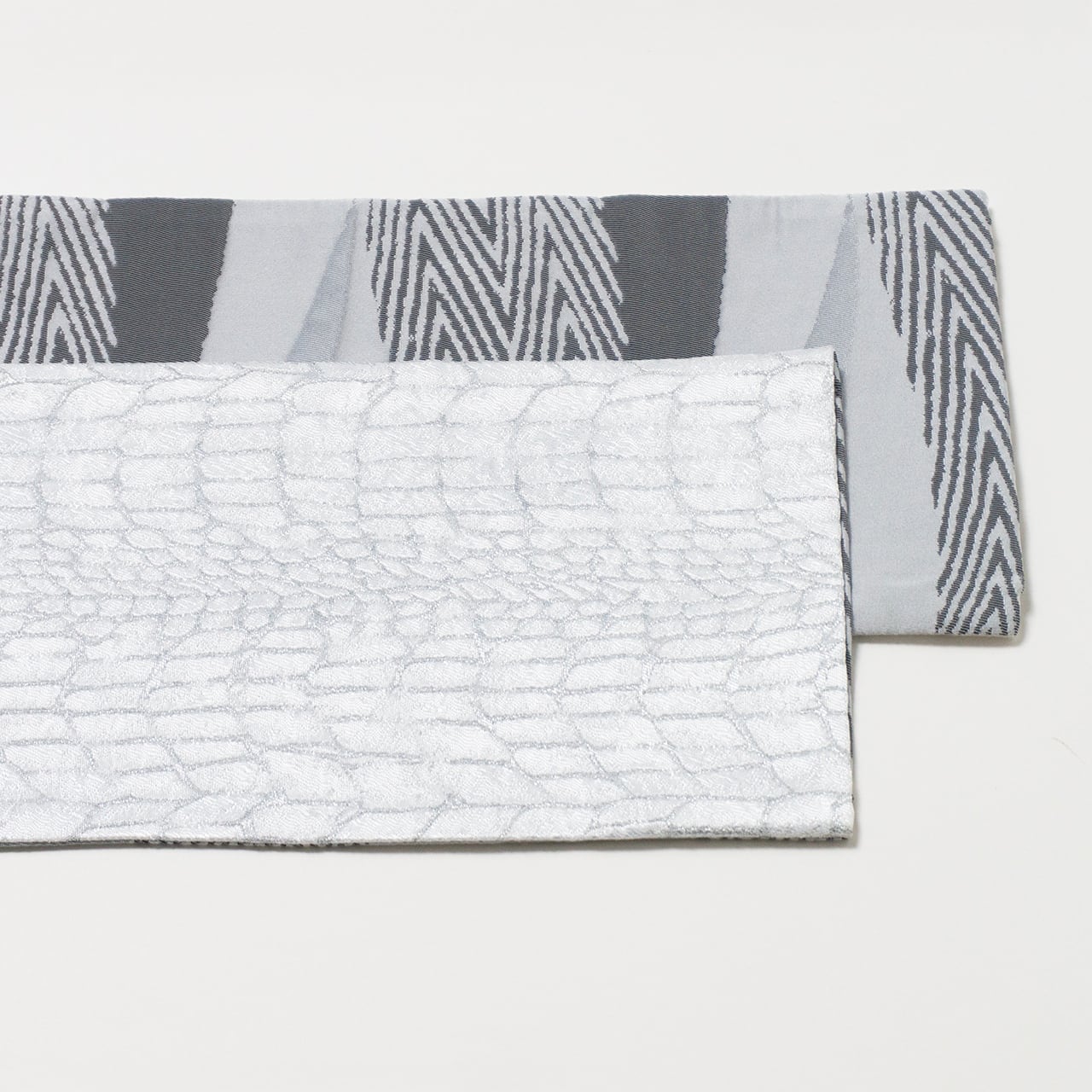 帯の産地、桐生で織っていただいたクロコダイル柄両面半幅帯「艶クロコ」ホワイトです。