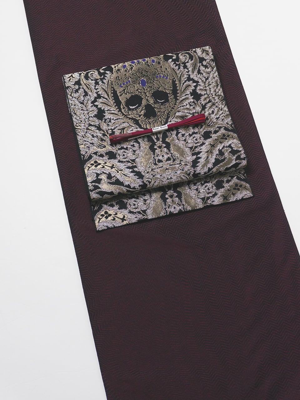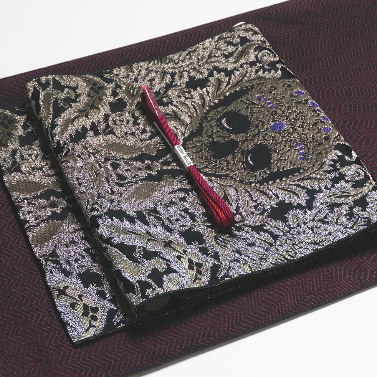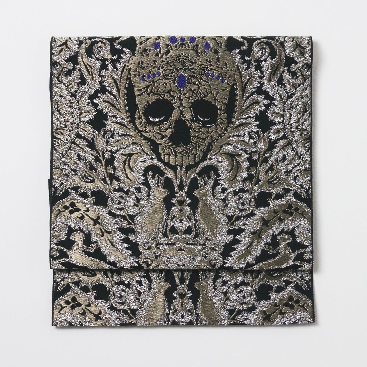 Rumi Rock 正絹 博多織名古屋帯「ドクロ更紗」 [E679]