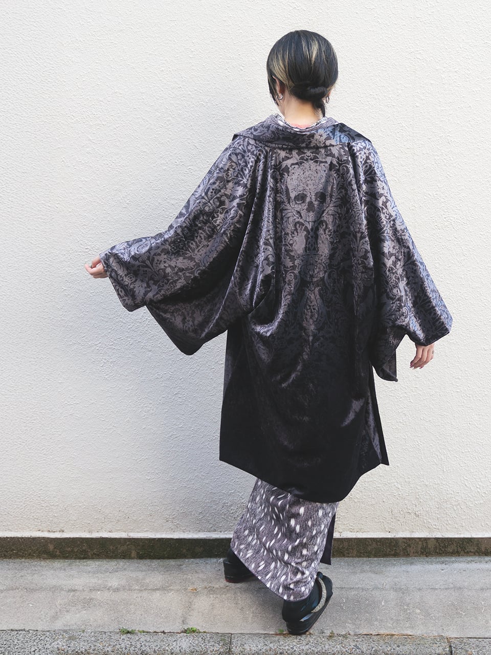 【即納品】ベロア羽織 ドクロ更紗 レディースM [B1081]
