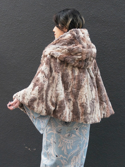 髪の毛を結ってもすっぽりかぶれる大きなフードが特徴のマントコート。